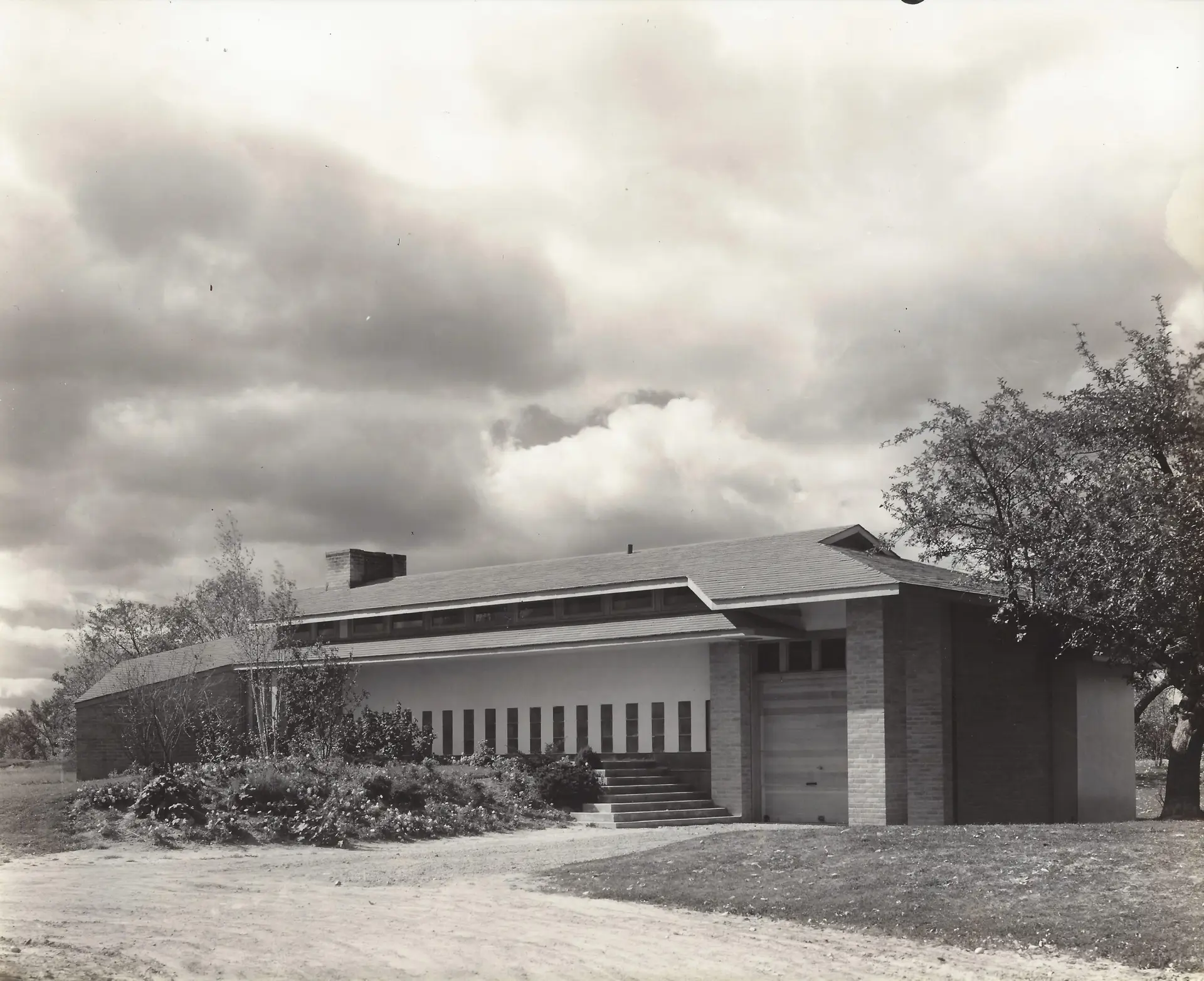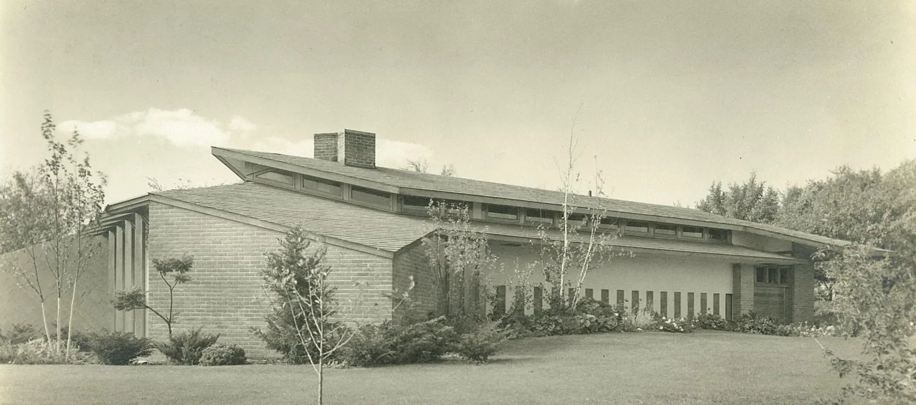 In the spring of 1936, Alden B. Dow prepared drawings of a residence for George Greene, a plant engineer with the Dow Chemical Company. Construction of the 1600 square foot house began in June 1936 and was completed in March 1937 at a final cost of $16,983. It was the second of three houses Mr. Dow designed for a cul-de-sac on the edge of the golf course of the Midland Country Club.