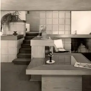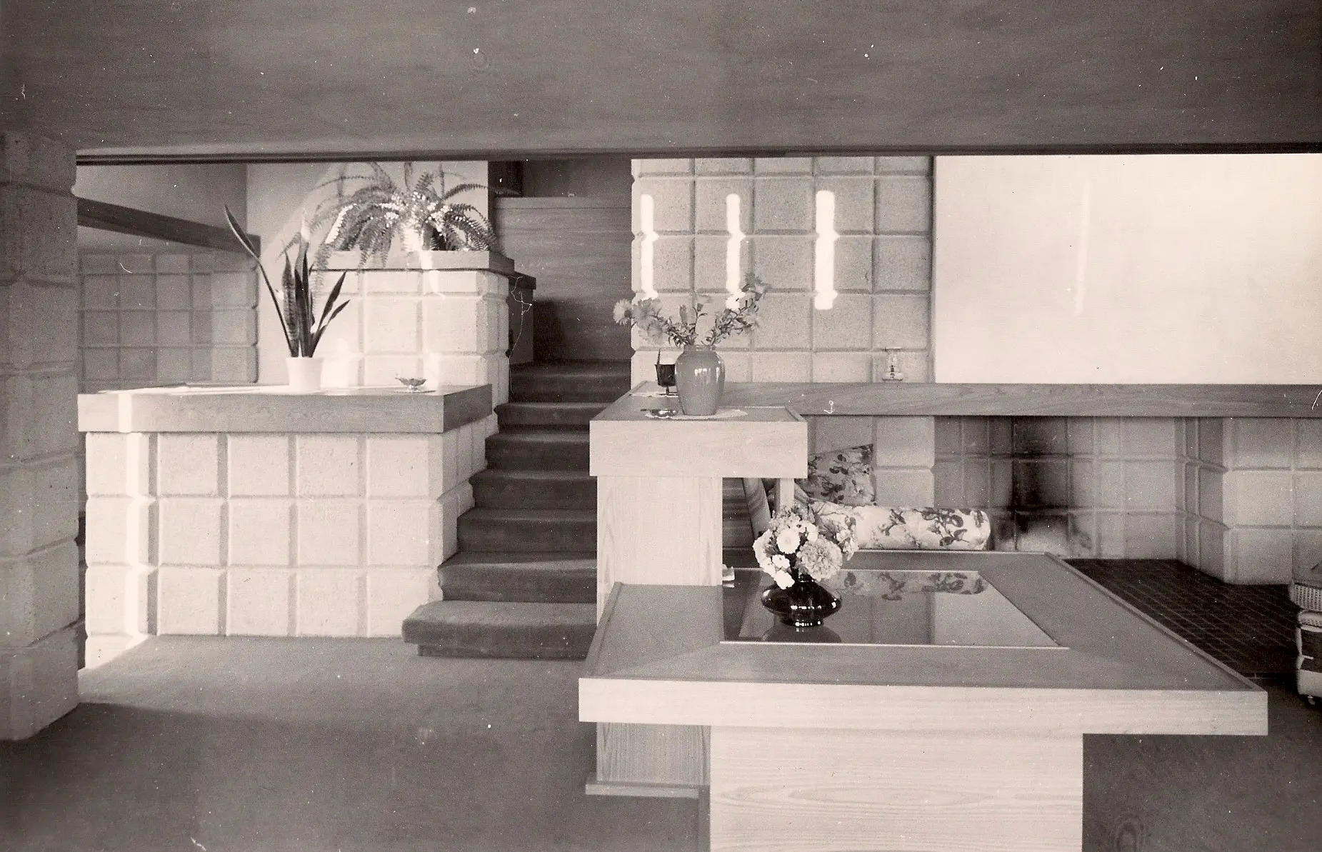 Designed in 1934, the John Whitman residence is one of 13 unit block houses Alden B. Dow built during the 1930’s. But what sets it apart from all the others is the distinction it has for winning for Mr. Dow the Grand Prize for Residential Design at the 1937 Paris Exposition, the same year the Empire State Building and Rockefeller Center won in the Industrial and Commercial categories.